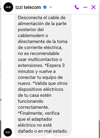 Entre los problemas más reportados son fallas en conexión a internet (88%), caída total del servicio (10%) y problemas con la trasmisión de TV (16%). Las ciudades con más reportes hasta el momento son Ciudad de México, Guadalajara, Monterrey y Nuevo Laredo. Hasta el momento, la empresa no ha comunicado la razón de estas fallas; sin embargo, recomienda a los usuarios ponerse en contacto a través de su canal de Facebook para atender las solicitudes. Al realizar el reporte a través de un mensaje en Facebook por fallas en la navegación de internet, el asistente virtual recomienda desconectar el cable de alimentación de la parte posterior del cablemódem o directamente de la toma de corriente eléctrica; no es recomendable usar multicontactos o extensiones. Además, sugiere esperar tres minutos y volver a conectar el equipo, validar que otros dispositivos eléctricos del hogar estén funcionando correctamente y, finalmente, verificar que el adaptador eléctrico no esté dañado o se encuentre en mal estado. En caso de que el servicio continué sin conexión el chat despliega la posibilidad de contactar directamente con soporte técnico. En un momento más información