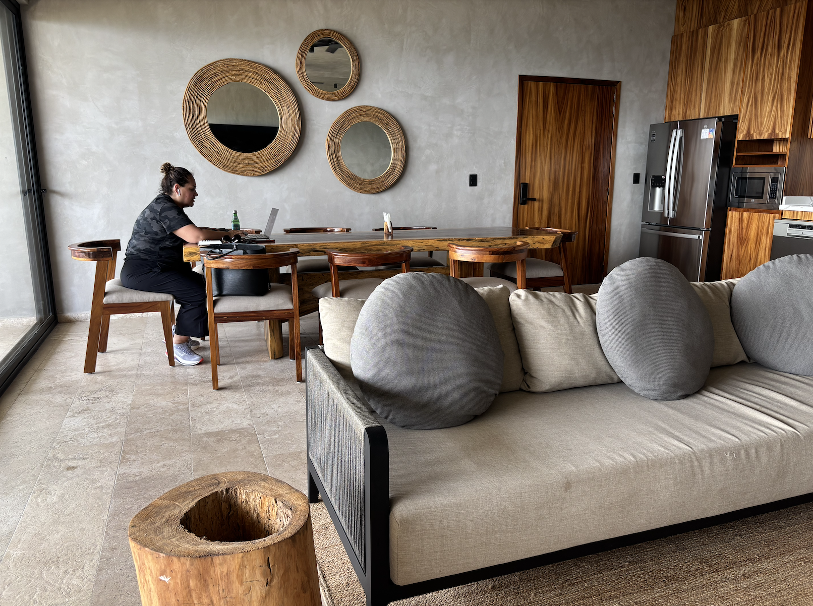 También observó que Puerto Escondido ofrecía costos de tierra más accesibles que destinos consolidados como Cancún o Los Cabos y que la posibilidad de crecimiento en la zona seguía abierta. La lectura fue correcta. En Oaxaca la ocupación hotelera anual ronda el 41%, aunque en temporadas como Semana Santa y Fin de Año supera el 76%, de acuerdo con la Secretaría de Turismo estatal. En el ámbito aéreo, el aeropuerto local cerró 2024 con más de 3,100 frecuencias y cerca de 519,000 asientos ofertados, con una ocupación promedio cercana al 79%. Esa combinación de valles y picos abrió oportunidad para modelos flexibles que atraen estancias largas y viajeros que buscan experiencias distintas. Olita combina el formato residencial con los servicios de un hotel boutique. “El huésped que llega lo hace buscando desestresarse, no solo hospedarse. La gente pide primero yoga, luego masaje, después chef privado y al final tours y clases de surf . Ese orden es natural. Llegas cansado, te reconectas y después sales a conocer”, explica Domínguez. El complejo trabaja con instructores, terapeutas y chefs de la zona. Los proveedores cobran directamente por sus servicios, sin intermediación. “Queremos que la derrama sea local. Si el guía o el terapeuta se van contentos, el huésped vuelve y nos recomienda. Ahí está el verdadero negocio”, asegura. Ese enfoque ha moldeado el perfil de los visitantes. Según Domínguez, el 60% de los huéspedes son mujeres que viajan solas o con amigas, y el resto familias y profesionales que combinan el descanso con el trabajo remoto . “La mayoría viene a trabajar y aunque estén de descanso, prende su computadora y sigue con pendientes”, comenta. El entorno tranquilo y la amplitud de los departamentos han convertido al lugar en una opción para quienes buscan concentración y otra forma de inspiración . “El lugar se presta para eso. Pusimos contactos en todos lados, en la terraza, en la recámara principal y hasta en la alberca. Hoy una obra que no tenga conectividad y energía está muerta”, afirma el CEO. El diseño estuvo a cargo del arquitecto Daniel Amkie, del despacho DAW en la Ciudad de México. El edificio se levanta como un monolito que prolonga el risco y su fachada sugiere el movimiento de una ola, lo cual responde no solo al oleaje característico del lugar sino a Olita, el nombre y logo del complejo que fue un trabajo inhouse . “Cuando lo pones en diminutivo transmite frescura y cercanía. El logotipo sigue esa línea con una ola en movimiento, en sintonía con la arquitectura que integra el edificio al paisaje”, dice Domínguez. En su primer año de operación, Olita superó el 60% de ocupación, incluso en temporada baja, mientras que los hoteles boutique de la zona alcanzan entre 25% y 30%, según datos internos de la empresa. Esa estabilidad se apoya en un modelo de costos eficiente. Al participar directamente en la construcción y gestión, el equipo logró reducir entre 25% y 35% el costo por metro cuadrado. Con esa estructura, el retorno de inversión se estima en un periodo de cinco a siete años, frente al doble que suele registrarse en el mercado. El plan de expansión contempla dos nuevos proyectos en Puerto Escondido y una futura salida a Cozumel, con residencias de más de 320 metros cuadrados. “Ya tenemos la curva de aprendizaje, los proveedores y el equipo. Sería un error soltarlo”, afirma Domínguez. Olita también trabaja de la mano con marcas hermanas que comparten la visión de experiencias con propósito. Palmers, Mezcal Comuna y Paccari acompañan distintas iniciativas que amplían el alcance del proyecto y robustecen su apuesta por el bienestar como estrategia de negocio. En un destino que se prepara para abrir rutas internacionales desde Dallas, Olita apunta a consolidarse como una opción competitiva dentro del segmento del wellness y de la hospitalidad. “Si logramos que la gente venga no solo a dormir sino a transformarse, ya ganamos”, apunta el CEO.